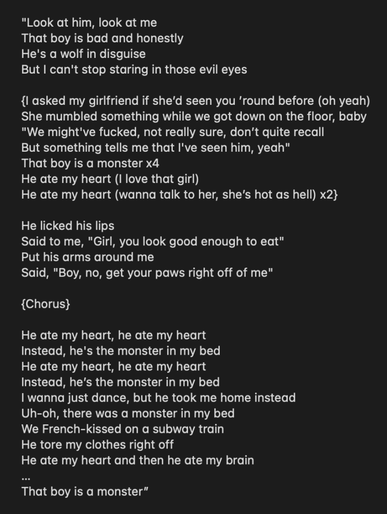 Songwriting is an artform, but there is a misconception that pop music is more often than not vapid and thoughtless, lyrically simple and repetitive with a shallow message that really doesn't matter as long as its catchy. While this perspective isn't completely unfounded, I believe that it can be so much more, and when it is done right it takes pop music to an entirely different level that has always fascinated me. I love beautiful melodies telling me terrible things, aching confessions set to 140 BPM with a bassline that will rattle the windows in your car so hard that people can hear it two stoplights away. When you can deliver a message that is raw and honest or tell a story that leaves your audience shaking once they realize the true depth of it with that hypnotic infectiousness that pop music is known for, it transcends pop and becomes art. The trick is to take something that destroys you, something that you need to get off your chest and stop running from it. Instead you have to wallow in it, study it, examine it with a rose colored lens that allows you to find the beauty in it, becuase there is beauty in absolutely everything if you look hard enough. And when you can find a way to confess it to the world in a poetic way that moves your audience, both physically and emotionally, then you have taken that trauma and transformed it into art. And if that suffering has allowed you to create something beautiful, then at least you didn't suffer in vain. And once you can achieve that it doesn't hurt anymore, not like it used to, because you have redeemed it for something greater and you're almost grateful for having gone through it and lived to tell the tale. One of the best examples of this I have ever came across is "Monster" by Lady Gaga. If you haven't heard it I would encourage you to find it (right there in the previous sentence) and listen to it, because it has a double meaning hidden in its lyrics that is so obvious once you know its there but its concealed so well beneath the ultrapolished, glittering facade of dance pop that most would never even know its there.